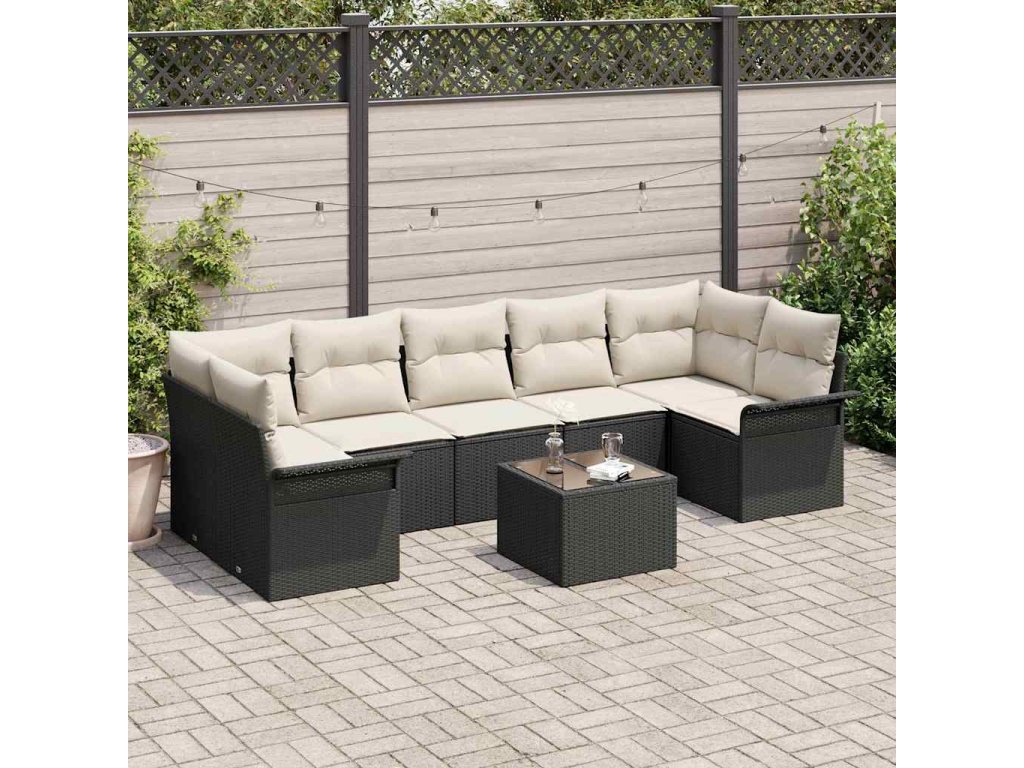 Tento zahradní pohovkový set pro čtyři osoby kombinuje elegantní černý poly ratan s krémovými polštáři a poskytuje maximální komfort a styl venkovní relaxaci. Je ideální pro setkání s rodinou nebo kamarády, a modulární design se pohodlně vejde na terasu, balkon nebo do zahrady. Promění váš venkovní prostor na stylové útočiště.
