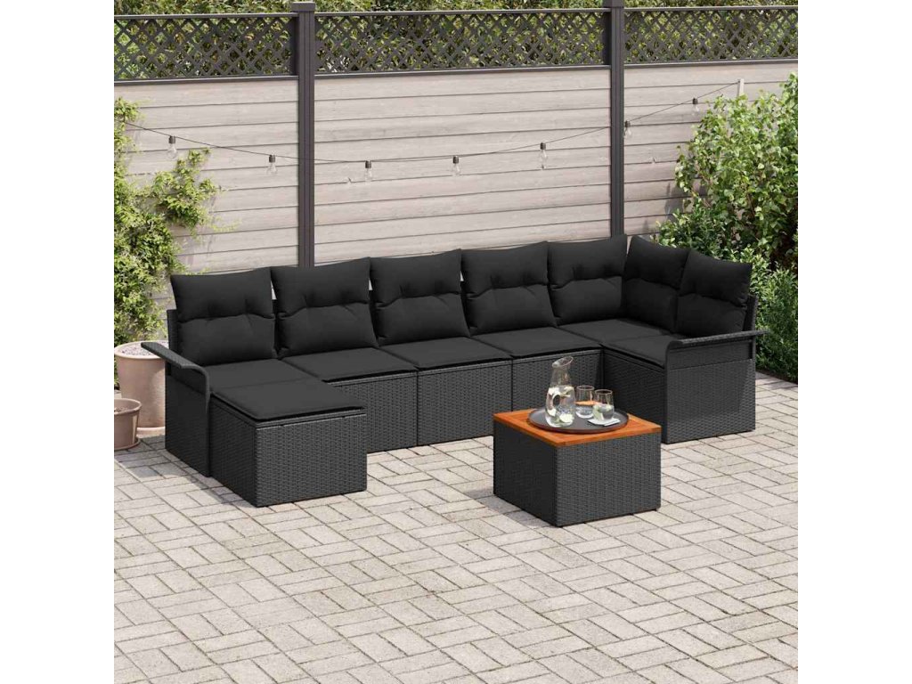 Tato sada venkovních pohovek je tady, aby pozvedla tvoje lenošení a skvěle vypadala ve tvých venkovních prostorách. S elegantním designem, černým poly ratanem a měkkými polštáři vytváří přátelskou atmosféru - ideální pro family setkání nebo relaxační odpoledne na sluníčku.