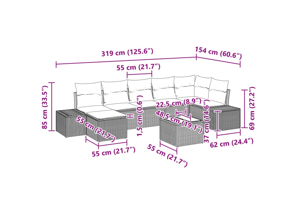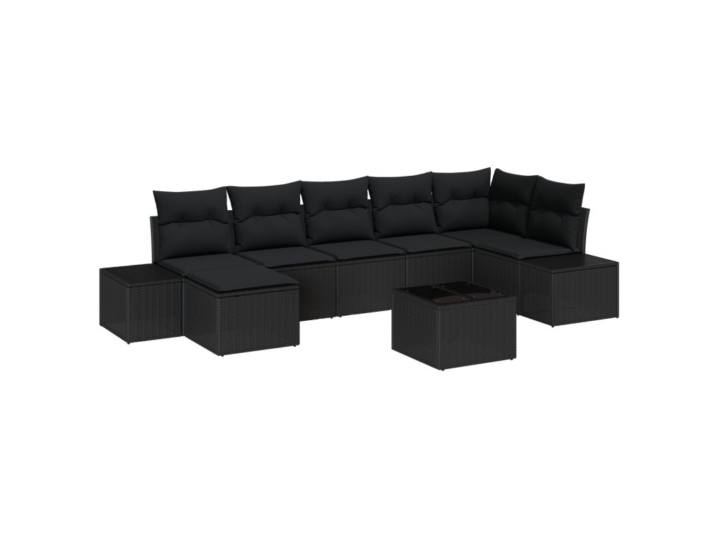 Tahle 8-dílná venkovní pohovka je perfektní na socializaci nebo odpočinek na zahradě či dvoře. Je dost pohodlná na rodinná setkání, obalená černým poly ratanem a měkkými polštáři. Výborně vytváří přátelskou atmosféru a dost komfortu na dlouhé venkovní večery.