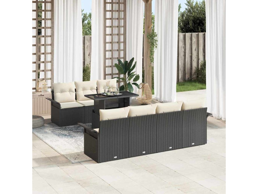 Tato 8dílná zahradní gaučová souprava je ideální pro tvé venkovní odpočinky. Je prostorná a má moderní design. Vyrobená z kvalitního poly ratanu, spojuje styl a funkčnost, takže je perfektní pro jakýkoliv balkon či zahradu.