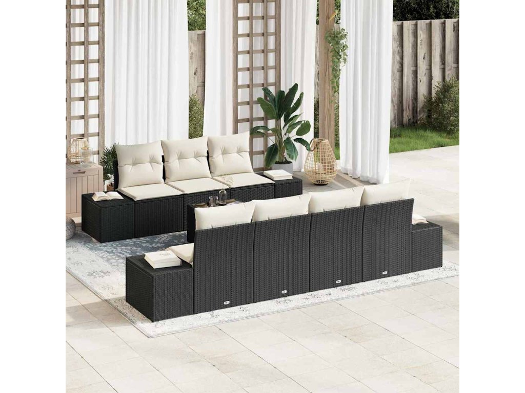 Tahle sada zahradního gauče vidaXL je dokonalá pro styl a funkčnost a poskytuje skvělé sezení pro tvůj venkovní prostor. S elegantním černým poly ratanovým rámem a štědře krémovými polštáři se to všechno točí kolem moderního života a dostatku místa na posezení s rodinou a přáteli.