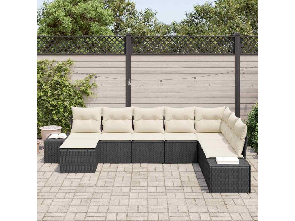 Tahle zahradní pohovka promění váš venkovní prostor na pohodlný kout, skvělý pro odpočinek a socializaci – ideální pro balkony a terasy. Elegance je podtržena černým poly ratanovým rámem a pohodlnými krémovými polštáři, které nabízejí komfort a styl pro všechny vaše venkovní akce.