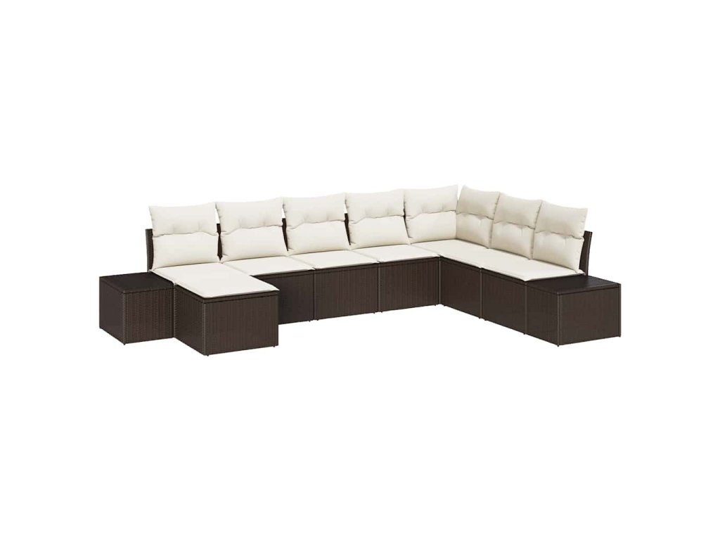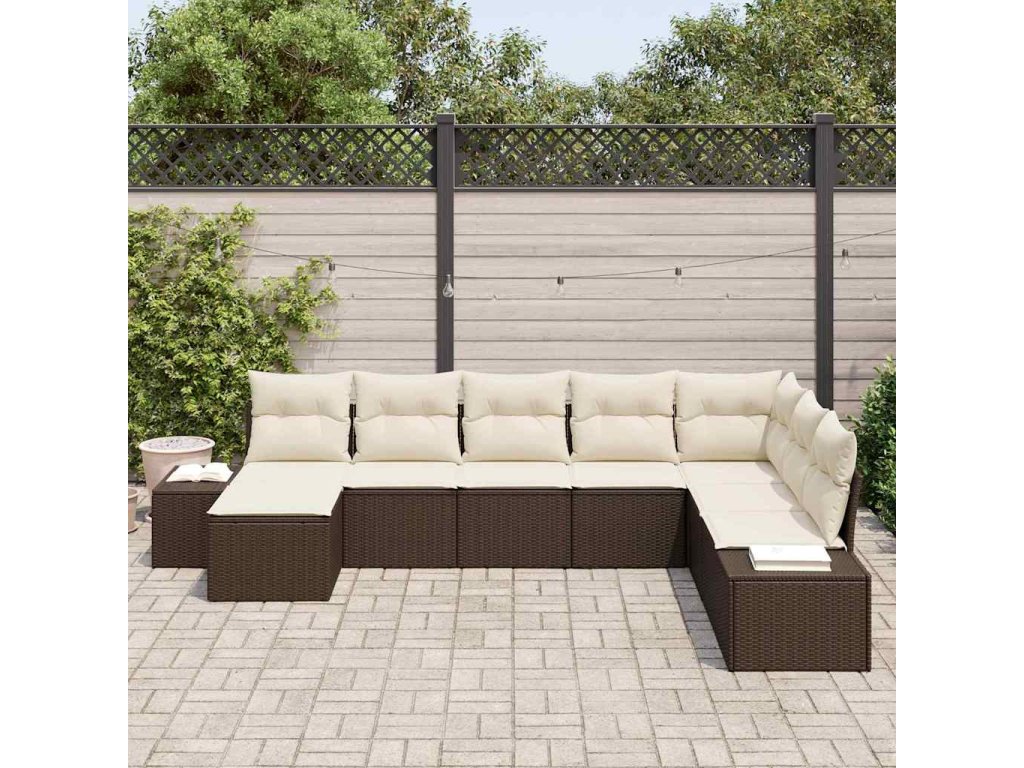 Tento zahradní pohovkový set dělá venkovní prostory příjemnějšími a je ideální pro relaxaci nebo lenošení s kamarády. Skvěle se hodí na terasy a zahrady. Jeho elegantní moderní design obsahuje hnědý poly ratan a měkké krémové polštáře, které nabízejí pohodlí a styl ve všech venkovních aranžmá.