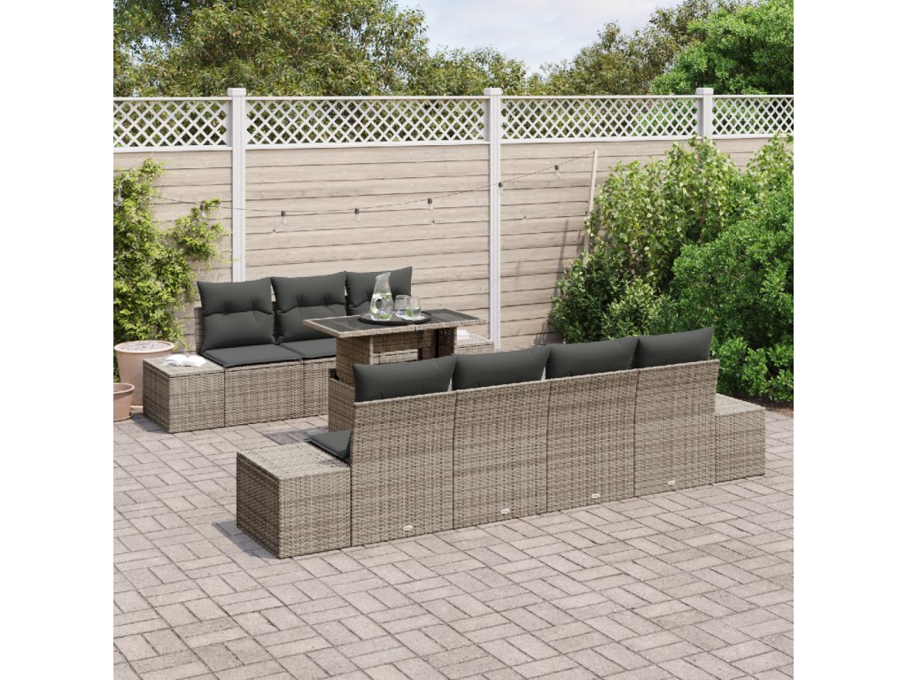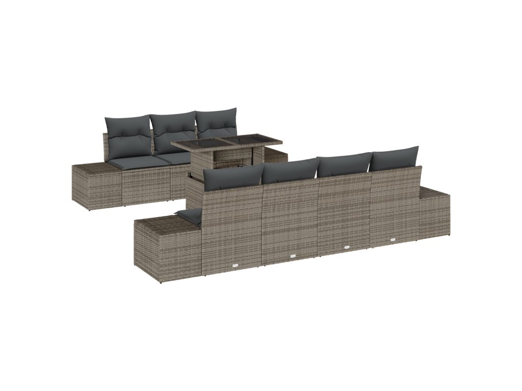 Set zahradních pohovek v šedé barvě přináší elegantní styl s inteligentním designem, což z něj dělá ideální venkovní nábytek na vaši terasu nebo zahradu. Její šedé a tmavé ratanové barvy dodávají vašemu venkovnímu prostoru příjemný pocit - ideální pro rodinu a přátele, kde si všichni příjemně posedí nebo vychutnají jídlo.
