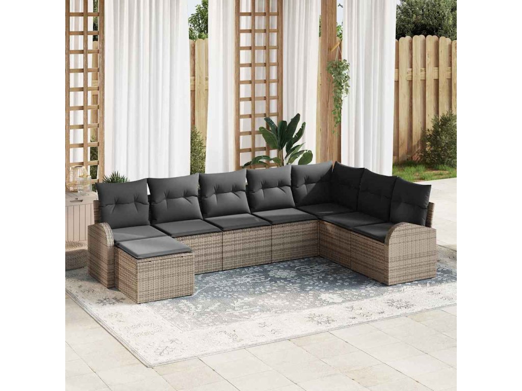 Tahle zahradní sofa souprava spojuje styl a funkci, má moderní design, který se perfektně hodí do zahrad a na terasy. S čistými liniemi a drobnými detaily vytváří pohodlné a příjemné místo pro relaxaci nebo zábavu venku. Textura polyratanu vypadá skvěle a dodává mu příjemný tkaný vzhled. Ať už si užíváte klidné chvíle sami nebo s přáteli, tahleta souprava nabízí pohodlné sezení, které je ideální pro lenošení odpoledne.