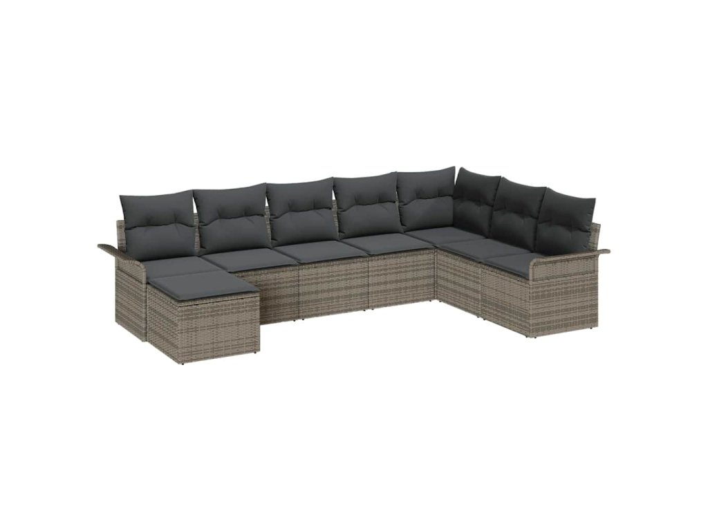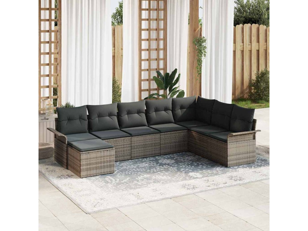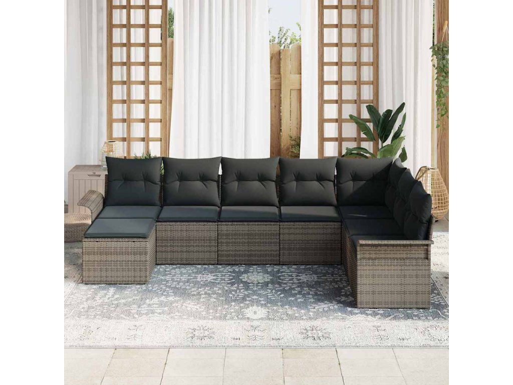 - Stylová estetika: Moderní design perfektně ladí s jakýmkoliv venkovním stylem. Šedé ratanové tkaniny s černými polštáři tvoří útulný vzhled, ideální pro odpočinek.