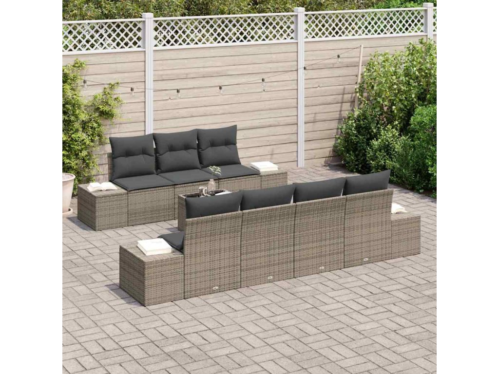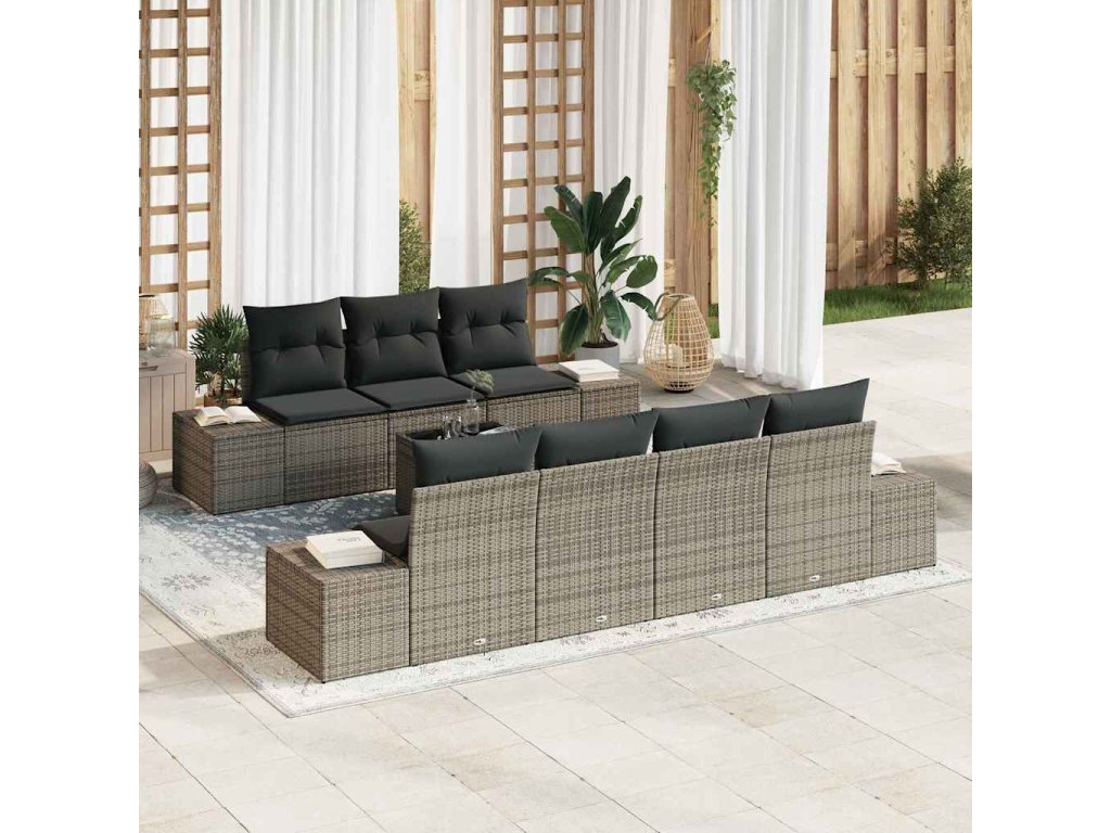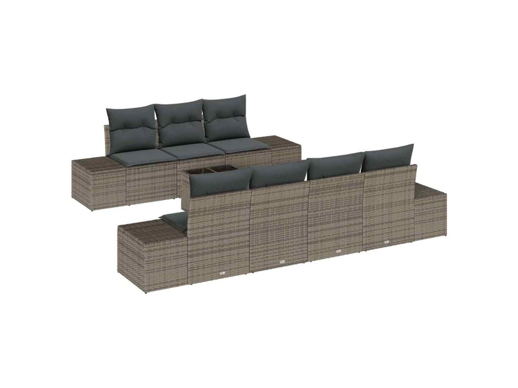 Tato zahradní pohovková souprava vidaXL spojuje styl s funkčností a nabízí skvělé sezení pro vaše venkovní prostory. S elegantním šedým poly ratanovým rámem a dostatečnými šedými polštáři je ideální pro moderní bydlení a zároveň poskytuje dostatek prostoru na relaxaci s přáteli.