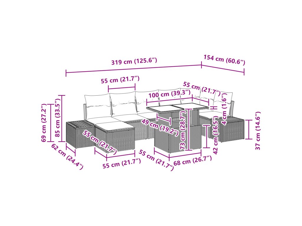 Tato 8dílná venkovní zahradní sedačka spojuje styl a funkci, což z ní dělá skvělou volbu pro váš venkovní lounge. Módní design, segment má hodně místa na sezení a můžete ho kombinovat podle svého vkusu.