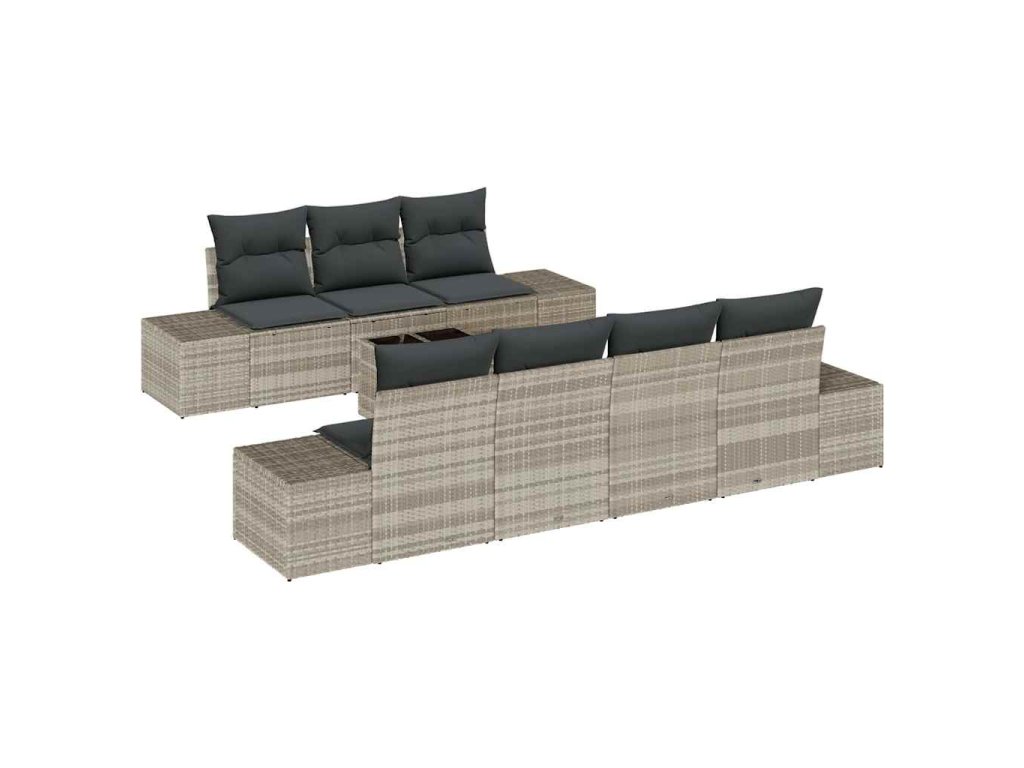 Sada zahradních pohovek vidaXL má styl a funkčnost. Poskytuje vám pohodlné místo na relaxaci venku. Světle šedý ratanový rám a tmavé polštáře se perfektně hodí do moderních prostor a nabízejí dostatek místa pro odpočinek s přáteli a rodinou.