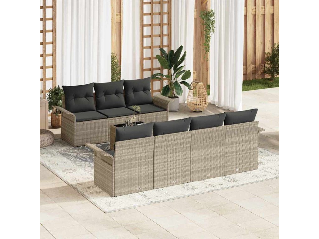 Tato sada zahradních pohovek přináší moderní design a spoustu místa na lenošení venku. Vyrobena z polyratanu s pohodlnými polštáři poskytuje příjemnou atmosféru pro setkání a relaxaci.