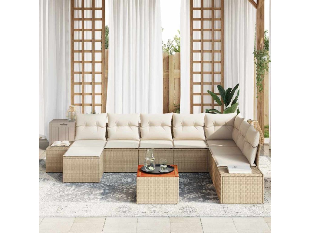 Tento zahradní pohovkový set nabízí skvělé a stylové místo pro relaxaci venku. Je to vše o pohodlí a praktičnosti, s elegantním béžovým poly ratanem a krémovými polštáři, což z něj dělá super doplněk na jakýkoli balkon nebo terasu.