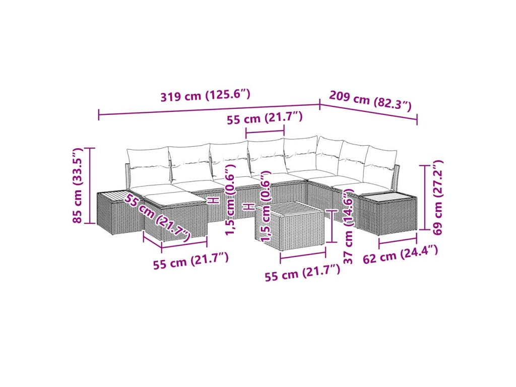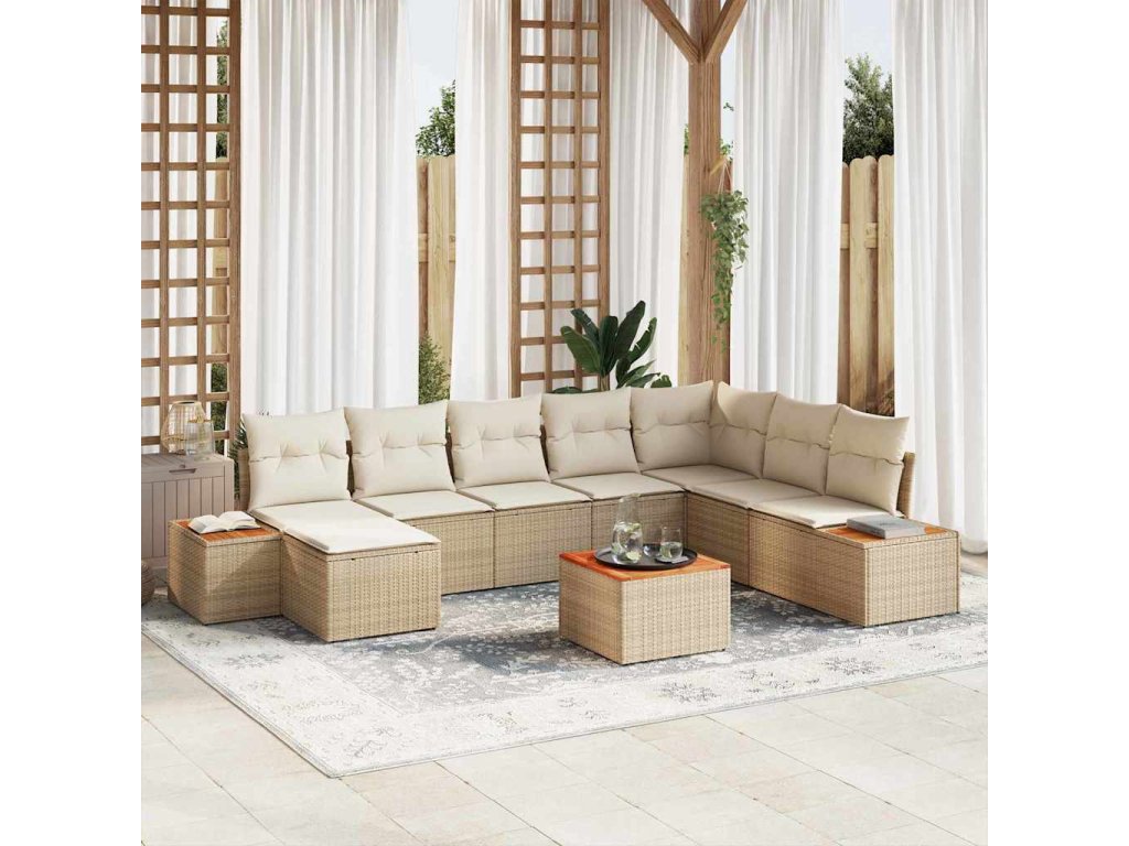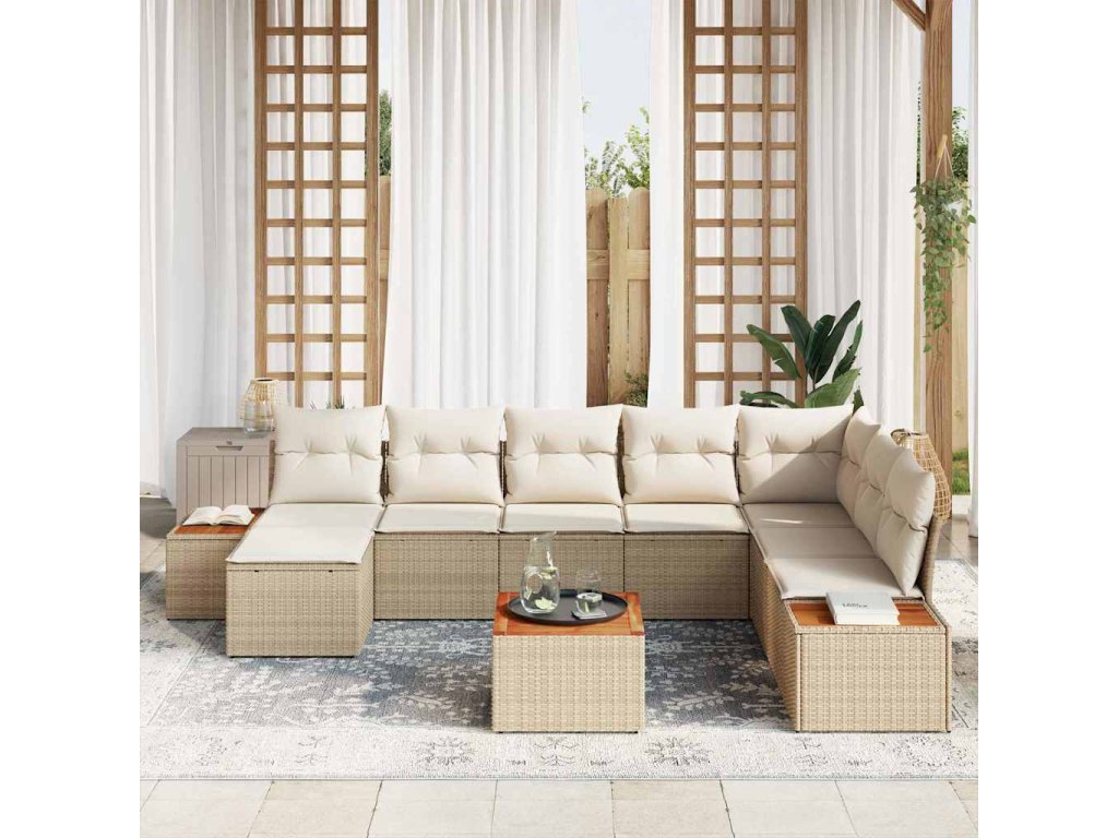 Tento set zahradních pohovek s polštáři vytváří elegantní a moderní atmosféru, ideální pro odpočínek nebo zábavu s kamarády. Je navržen tak, aby se skvěle hodil na zahradu nebo terasu, a jeho modulární uspořádání ti umožní přizpůsobit si prostor podle toho, co zrovna potřebuješ.