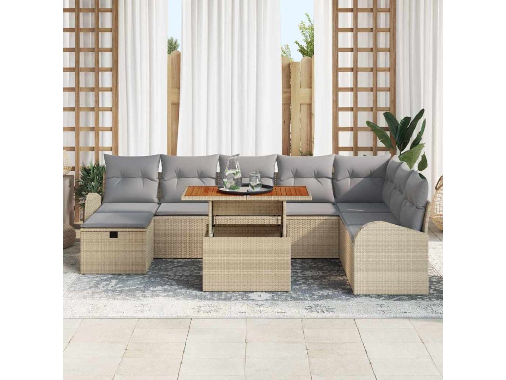 Tato zahradní rohová pohovka je ideální pro venkovní zábavu, zkrásní každou terasu, zahradu nebo balkon. S tímto flexibilním designem si ji můžeš uspořádat přesně podle svých potřeb, ať už pořádáš grilovačku, nebo si jen chceš v klidu užít čas. Stylová béžová a šedá barva s pohodlnými polštáři se skvěle hodí k venkovnímu stylu a tvoří útulné místo k odpočinku.