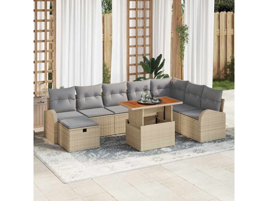 - Prostor pro každého: Až pro 8 lidí, tenhle set je perfektní pro setkání a zajišťuje pohodlný prostor pro relaxaci a užívání si s ostatními.