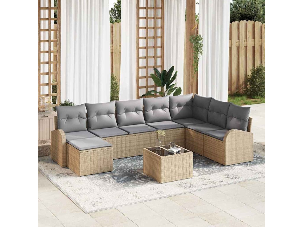 Tahle zahradní sofa souprava spojuje styl a funkci, má moderní design, který se perfektně hodí do zahrad a na terasy. S čistými liniemi a drobnými detaily vytváří pohodlné a příjemné místo pro relaxaci nebo zábavu venku. Textura polyratanu vypadá skvěle a dodává mu příjemný tkaný vzhled. Ať už si užíváte klidné chvíle sami nebo s přáteli, tahleta souprava nabízí pohodlné sezení, které je ideální pro lenošení odpoledne.