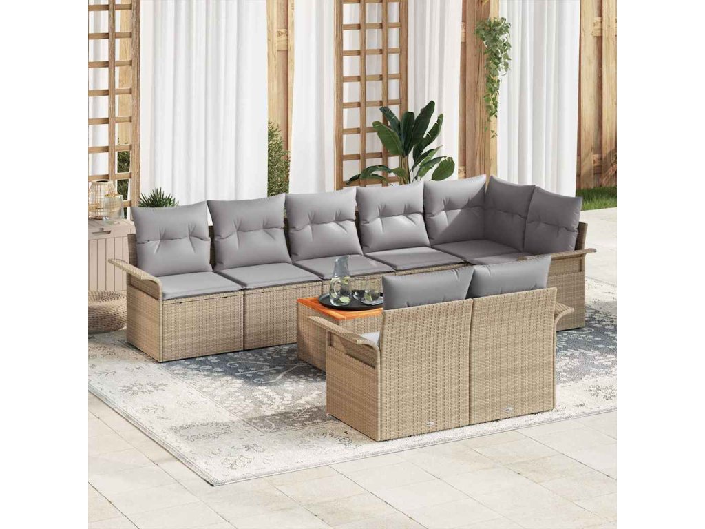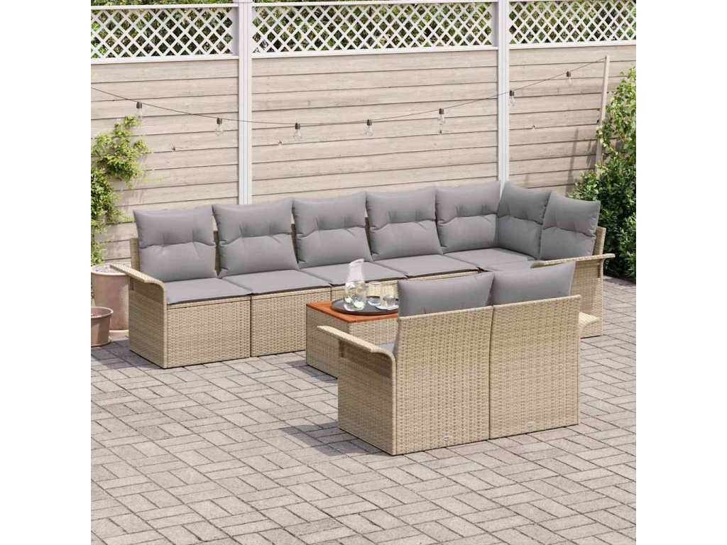 - Venkovní pohodlí: Tenhle prostorný zahradní gaučový set se zaměřuje na pohodlí, s polštáři ideálními na lenošení. Pojme až devět lidí, takže je super pro setkání.