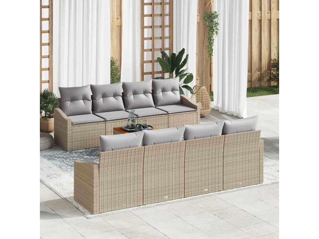 Tato 9-dílná zahradní pohovková souprava je přesně to pravé pro venkovní prostory, spojuje pohodlí a styl. S moderním nádechem v béžovém a šedém ratanu ti vytváří příjemné místo pro setkání nebo relaxaci na balkoně.
