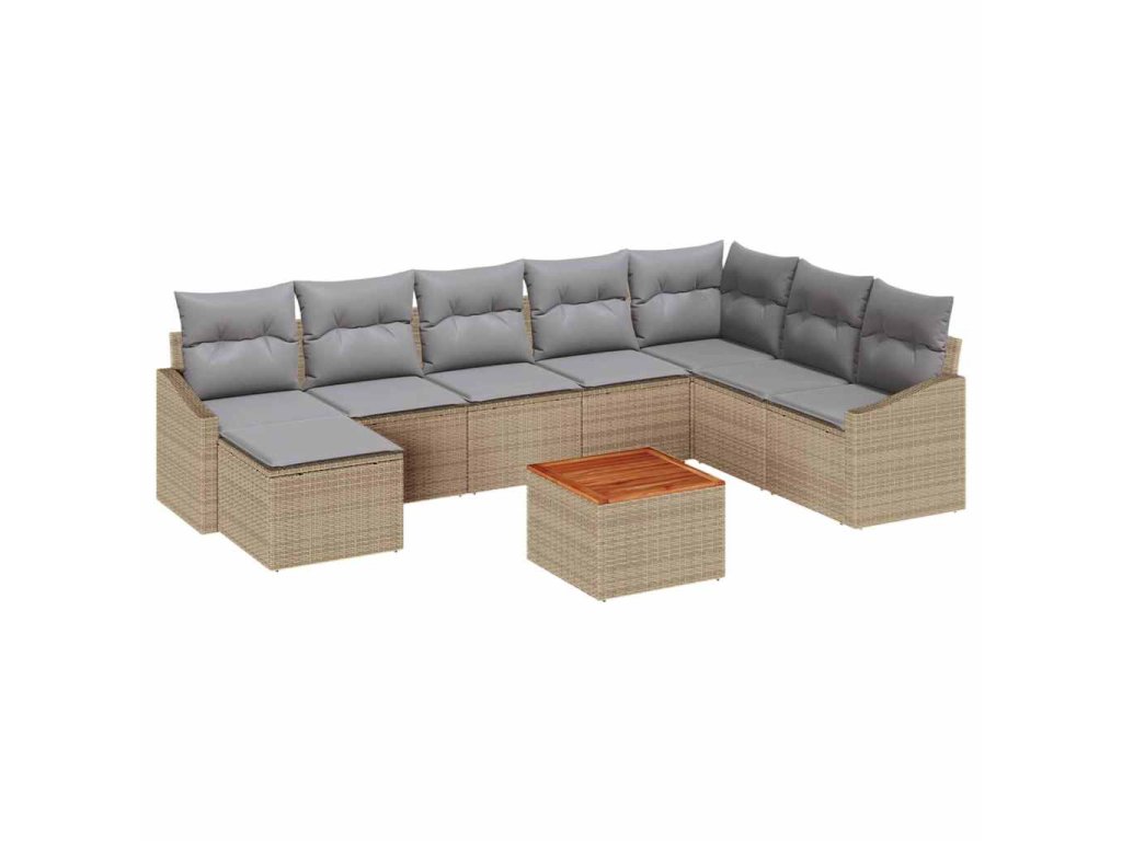 Tato devítidílná zahradní souprava sofa spojuje funkčnost a styl. Poskytne ti pohodlné sezení pro skvělé venkovní zážitky. Ať už se chystáš na lenošení na sluníčku, nebo máš přátele na návštěvě, její design se hodí do zahrad, teras a balkonů, a vytvoří skvělou atmosféru.