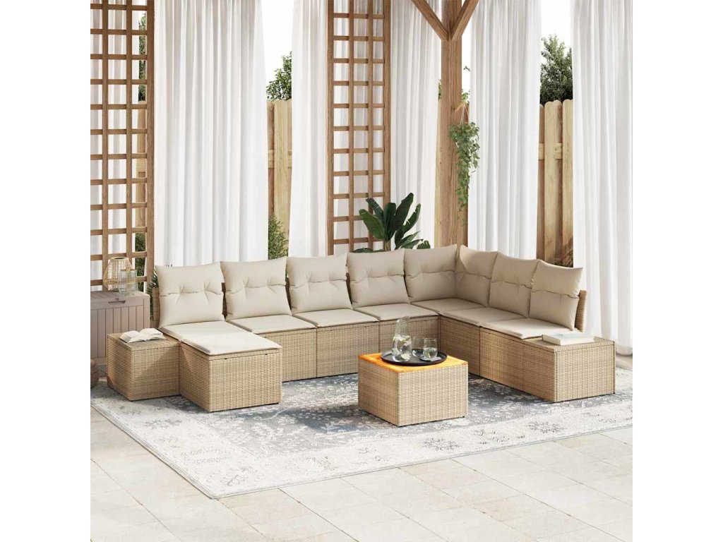 Tento zahradní pohovkový set nabízí skvělé a stylové místo pro relaxaci venku. Je to vše o pohodlí a praktičnosti, s elegantním béžovým poly ratanem a krémovými polštáři, což z něj dělá super doplněk na jakýkoli balkon nebo terasu.
