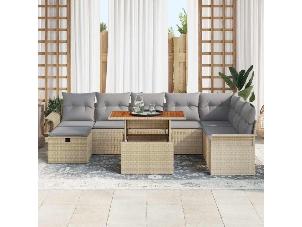 Tato moderní venkovní sedací souprava je parádní volba pro proměnu vaší zahrady nebo terasy na pohodlné a stylové místo venku. S elegantním, minimalistickým designem, který je teď trendy, přináší spoustu stylu a praktických výhod. Čisté linie a málo ozdob zajistí pěkný vzhled a zároveň se pohodlně odpočívat. Neutrální barvy a příjemná textura skvěle ladí s přírodou, vytvářejí příjemnou atmosféru pro setkání nebo chvilku o samotě.