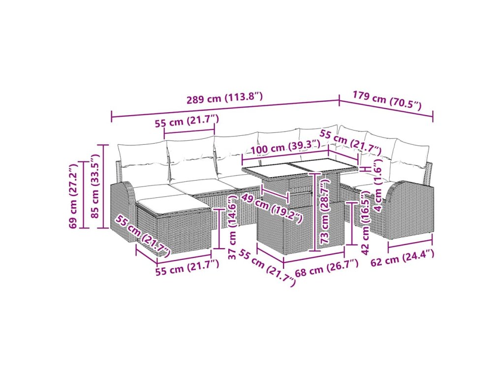 - Odolné vůči počasí: Zkonstruováno tak, aby odolalo povětrnostním vlivům, tato pohovková souprava je ideální pro venkovní použití celý rok.
