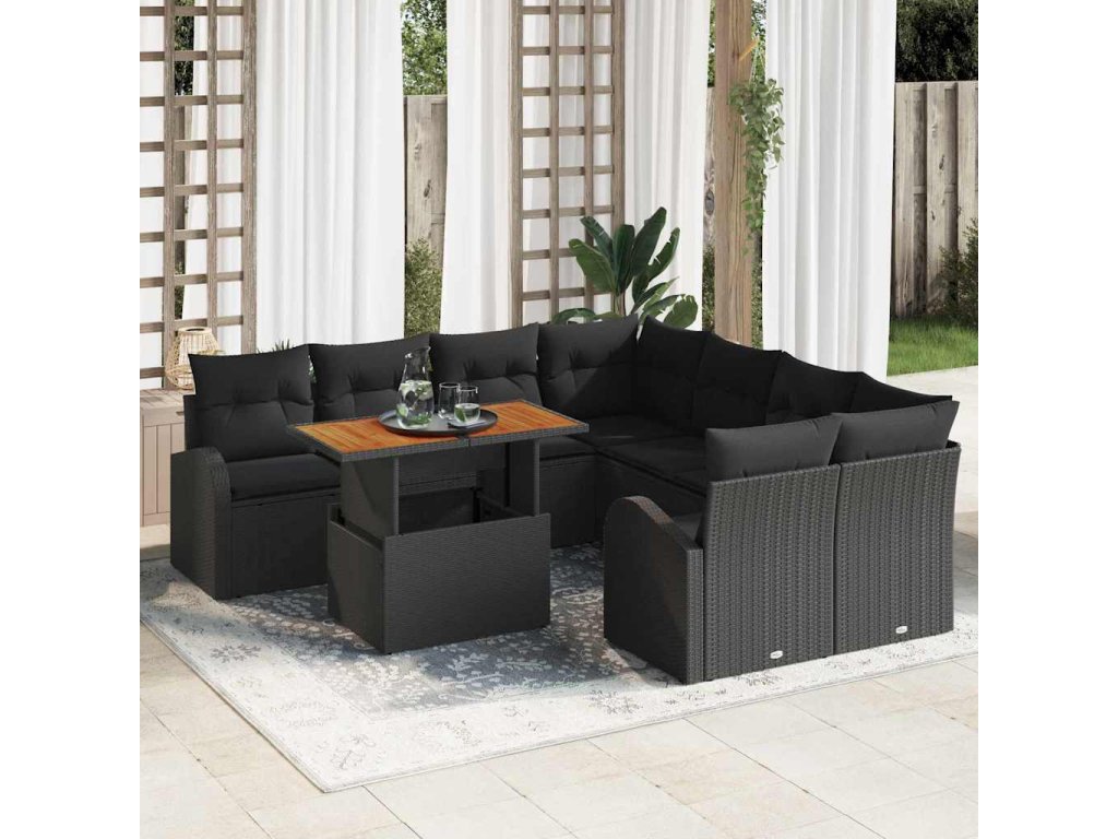 - Pohodlné sezení: Tenhle set je maximálně pohodlný se silně polstrovanými černými polštáři, ideální na dlouhé sezení.