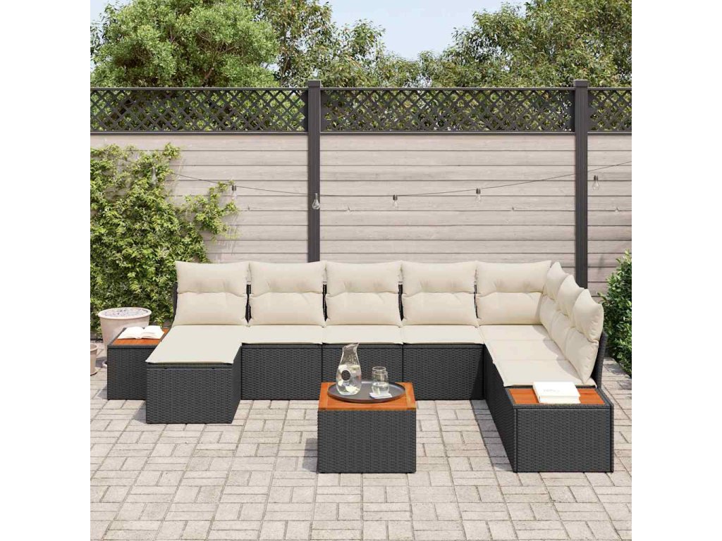 Tento set zahradních pohovek s polštáři vytváří elegantní a moderní atmosféru, ideální pro odpočínek nebo zábavu s kamarády. Je navržen tak, aby se skvěle hodil na zahradu nebo terasu, a jeho modulární uspořádání ti umožní přizpůsobit si prostor podle toho, co zrovna potřebuješ.