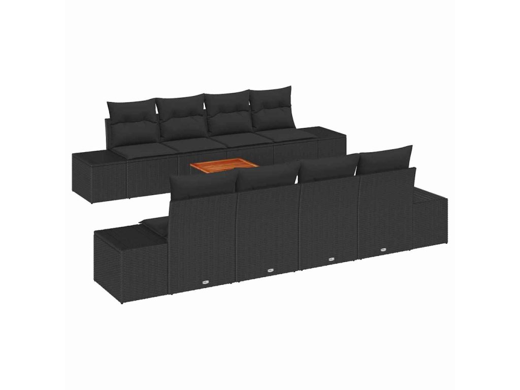 Tato 9dílná sada zahradní pohovky je udělaná z pevných poly ratanových materiálů s elegantním matným povrchem a pohodlnými černými polštáři. Je skvělá pro venkovní chillování, spojuje styl a pohodlí. Moderní design na čistých liniích vytváří super atmosféru pro odpočinek nebo zábavu.