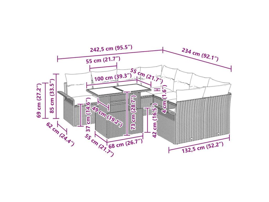 Tento zahradní pohovkový set kombinuje styl a pohodlí, takže je ideální pro venkovní akce nebo prostě jen relaxaci na čerstvém vzduchu. Vyrobený z poly ratanu, má moderní vzhled, co se hodí do různých venkovních prostorů — balkonů, teras nebo zahrad — a nabízí spoustu pohodlných míst k sezení.
