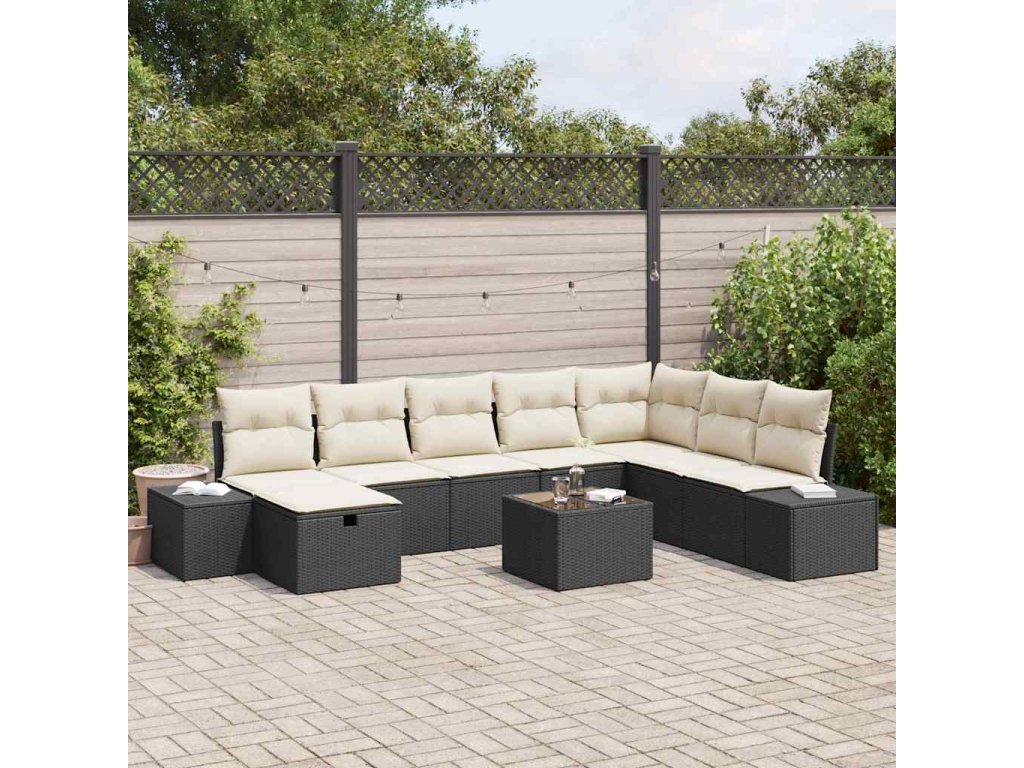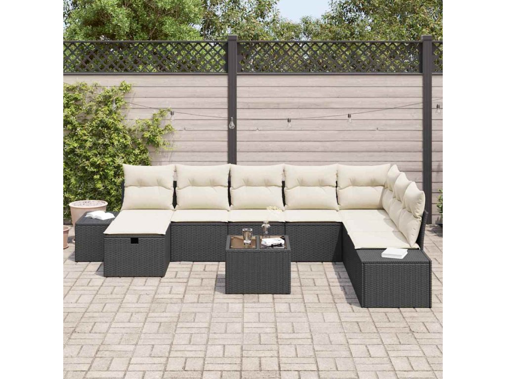 Tato 9dílná zahradní pohovka vidaXL má moderní vzhled, který spojí styl a praktičnost a je ideální pro zahradní párty nebo relaxační odpoledne venku. Je vyrobená z odolného polyratanu a má pohodlné polyesterové polštáře, což vytváří stylové místo pro rodinu a přátele, aby se sešli a užili si pohodlí.