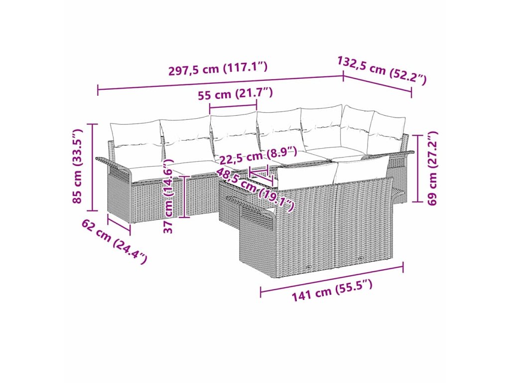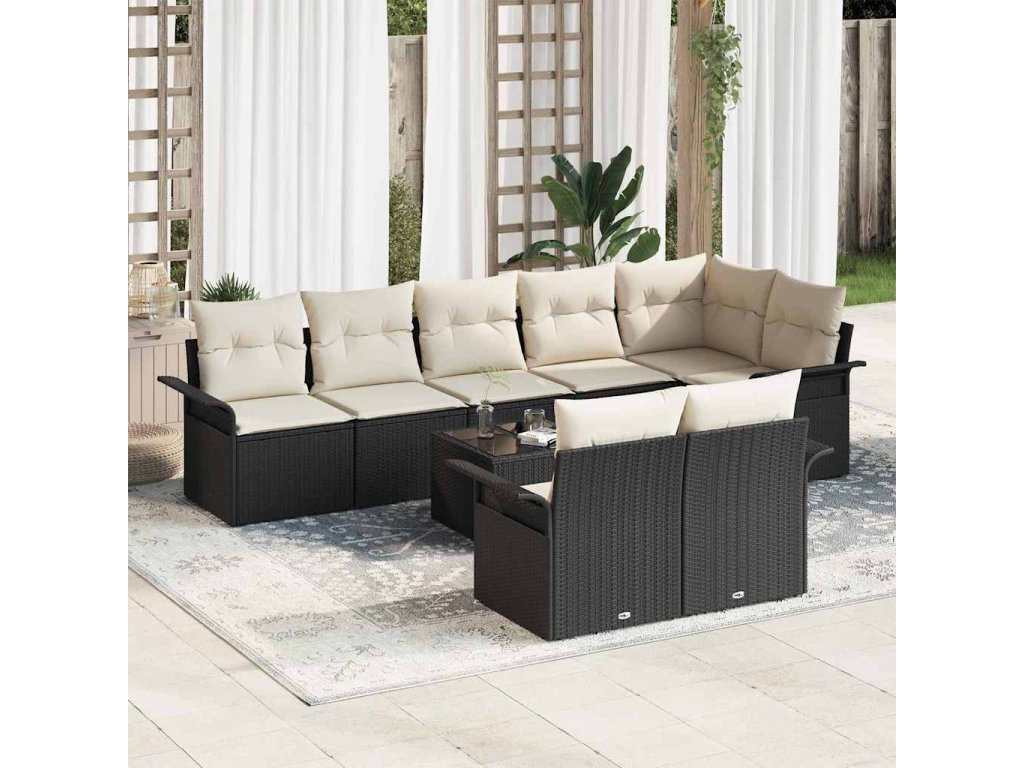 - Součásti: Každý kus setu má pohodlné polyesterové polštáře se zipy pro snadné čištění. Poly ratanové opěrky dobře drží a šikmé opěrky rukou navyšují pohodlí. Tyto detaily spojují styl a funkčnost.