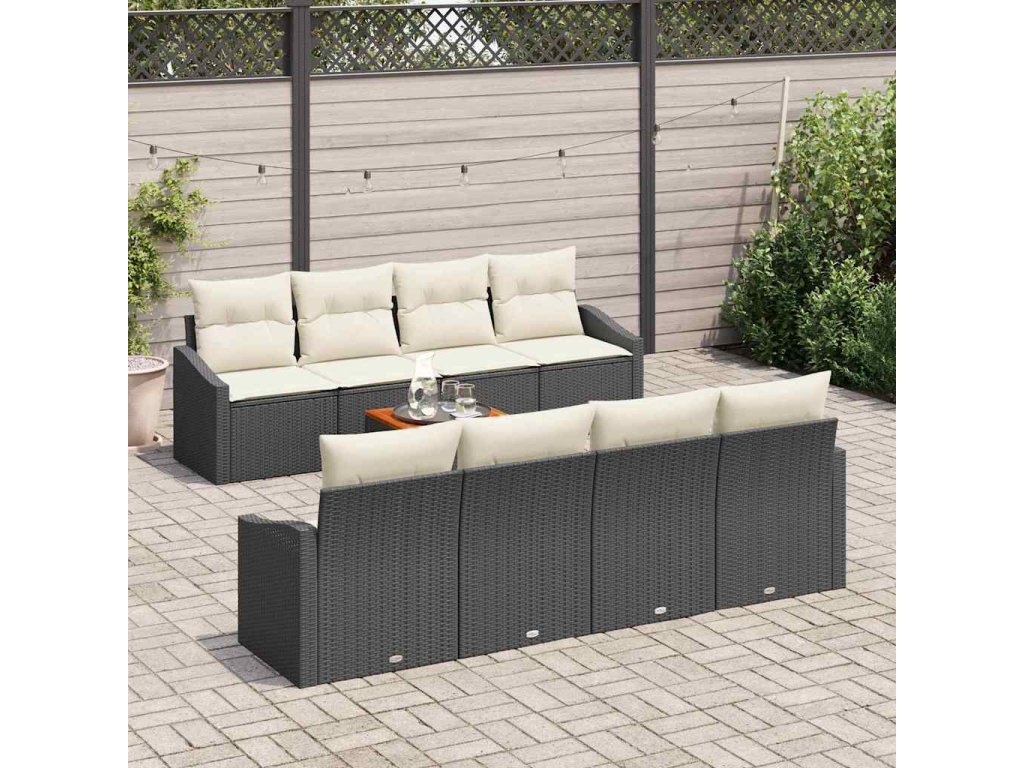 Tato 9-dílná zahradní sedací souprava je prostě skvělá pro venkovní prostory. Bez námahy spojuje komfort a styl. Má moderní design s úžasnou kombinací černého ratanu a krémových polštářů, a vytvoří perfektní útulné místo pro rodinná setkání nebo klidné chvíle na balkóně.