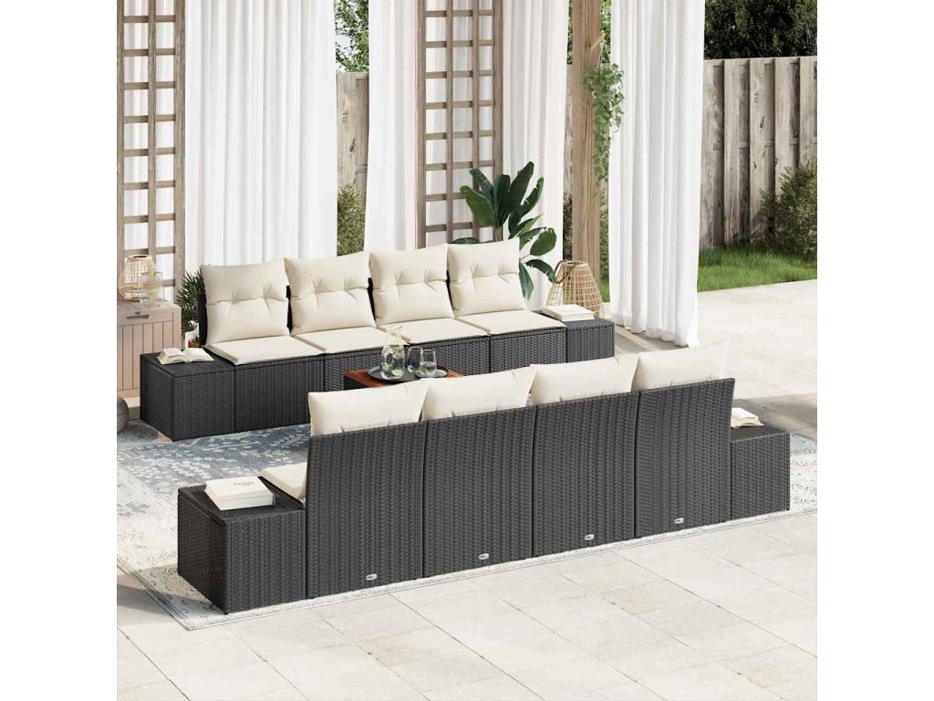 Tato 9-kusová sada zahradní pohovky, vyrobená z odolného polyratanu a s měkkými polyesterovými polštáři, je stvořená pro komfort a styl venkovního lenošení. S moderním vzhledem, čistými liniemi a jemnými barvami se skvěle hodí na balkony nebo do zimních zahrad—ideální pro odpočinek a zábavu s přáteli a rodinou.