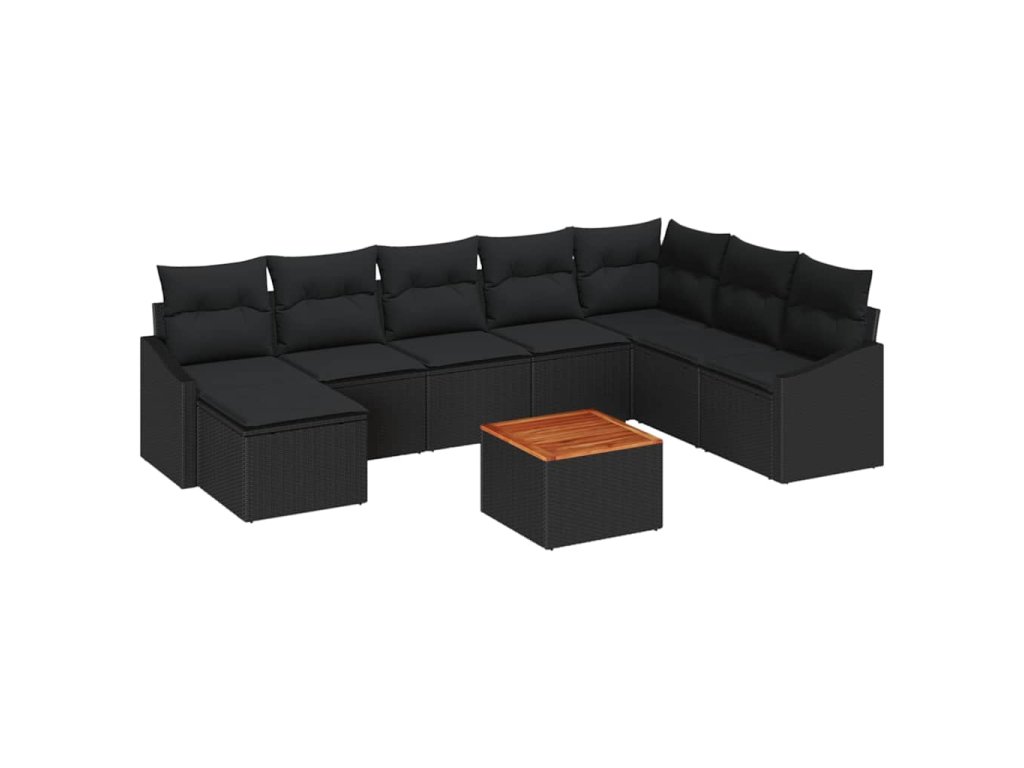 - Stylové prvky: Moderní design, s mixem černého poly ratanu a masivního akáciového dřeva, dodává nádech elegance každému venkovnímu prostoru.