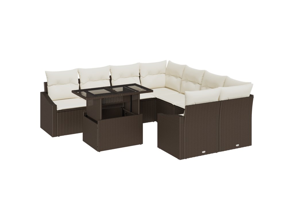 Tato 9-dílná sada zahradních pohovek přetváří váš venkovní prostor na stylové místo pro odpočinek nebo zábavu. Díky pevnému poly ratanovému rámu a pohodlným polštářům se zaměřuje především na odolnost a komfort, který perfektně zapadá do vašeho venkovního stylu.