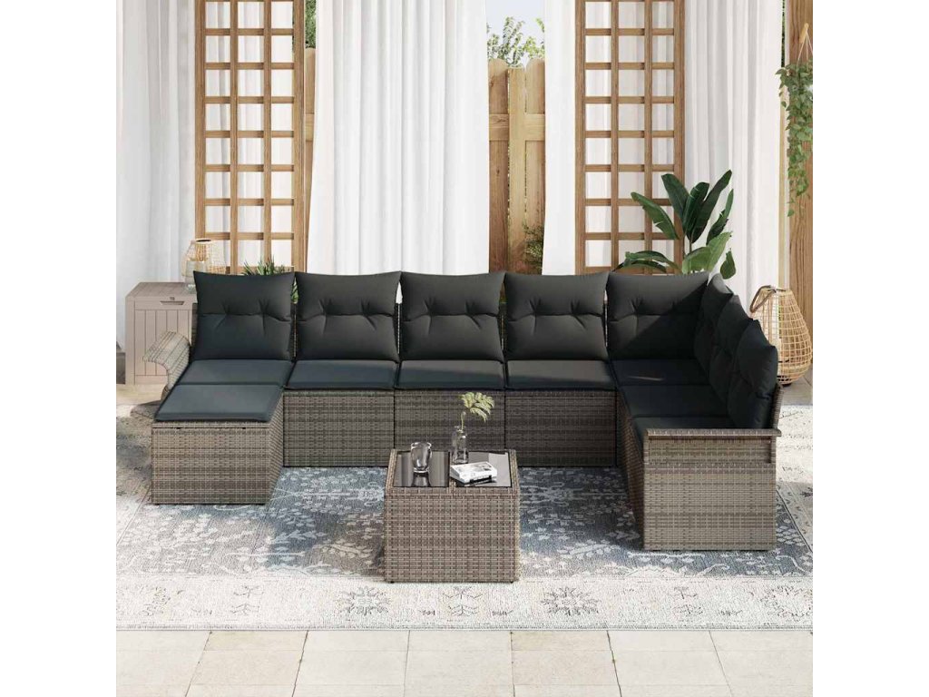 - Velká kapacita sezení: Tato pohovka je určena pro až osm lidí, což nabízí spoustu místa pro sezení. Její prostorný design skvěle podporuje socializaci a užívání si venku.