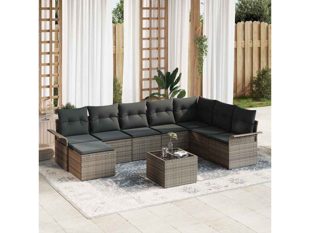 - Stylová estetika: Moderní design soupravy se perfektně hodí do každého venkovního interiéru. Šedé ratanové tkaniny a polštáře vytvářejí super atmosféru pro lenošení a zábavu.