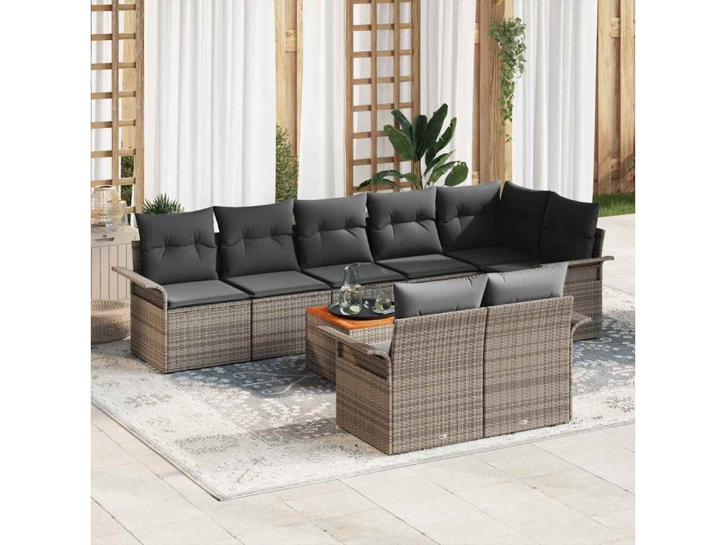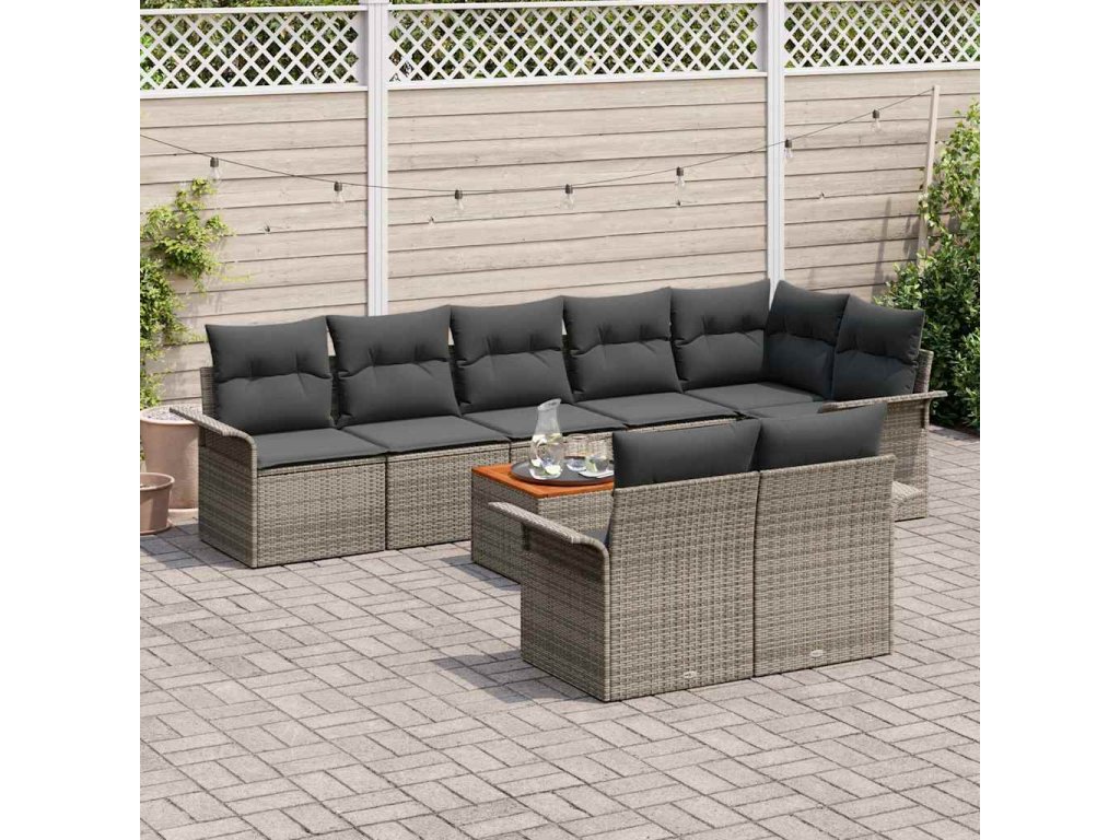 Tenhle zahradní pohovkový set je stylovým a praktickým doplňkem pro venkovní prostory. Skvěle se hodí na jakoukoli akci nebo prostě k relaxaci s rodinou. Krásná kombinace šedého ratanu a pohodlných polštářů vytváří příjemnou atmosféru na slunečné dny na terase, balkóně nebo zahradě.