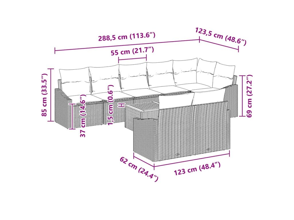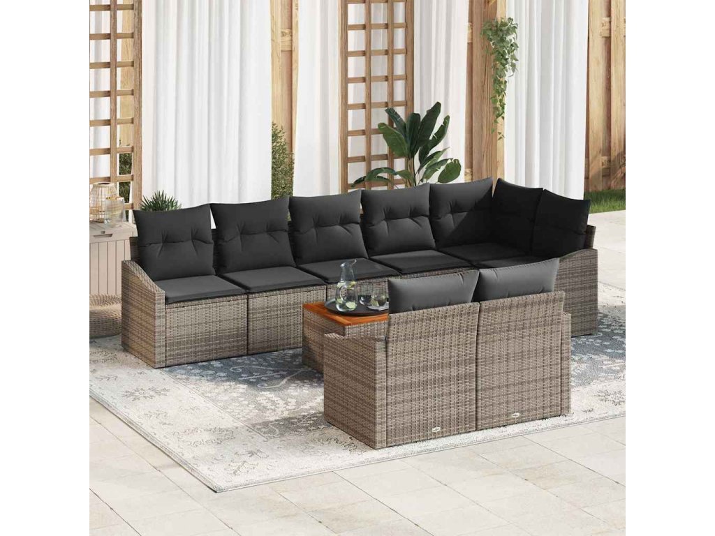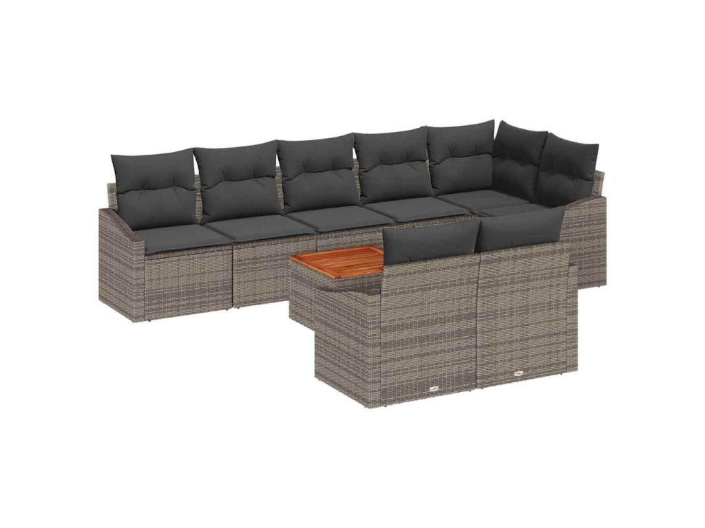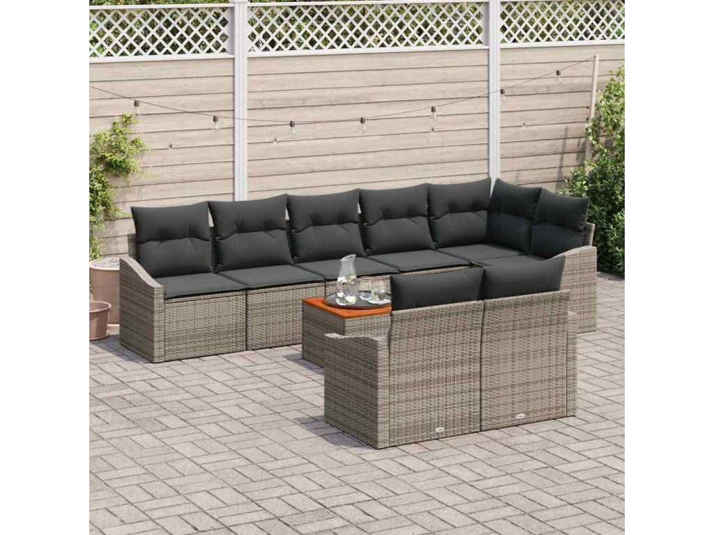 Tato sada zahradních pohovek na 9 dílů s polštáři je skvělá volba pro venkovní sezení na balkónech a terasách. Kombinuje funkčnost s moderním stylem. S množstvím míst a pohodlnými polštáři je ideální na setkání, brunch nebo klidný večer, díky čemuž se váš venkovní prostor stane příjemným místem na odpočinek.