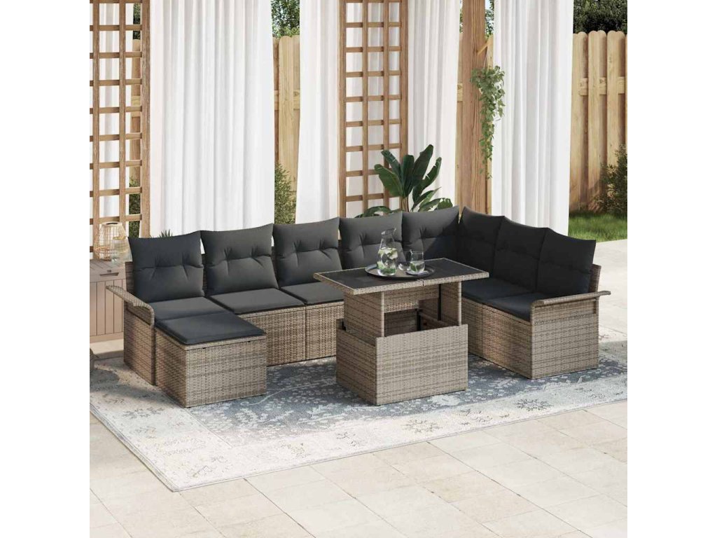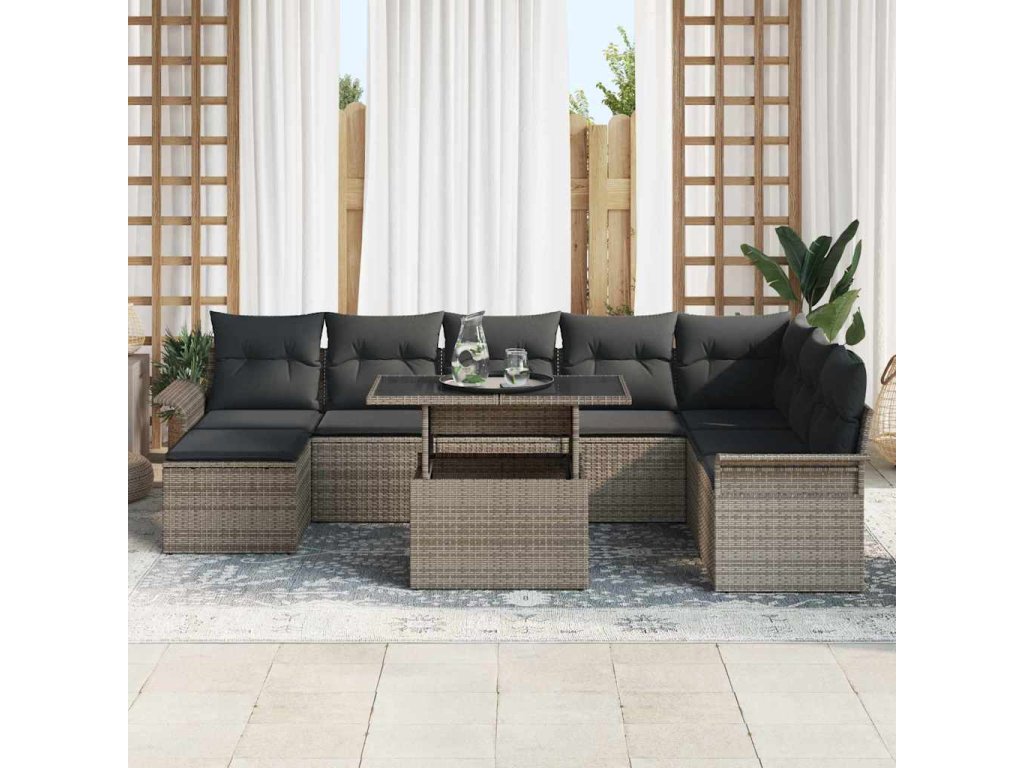 Tato zahradní sedací souprava se soustředí na pohodlí a styl, takže si užiješ venkovní čas. Díky modulárnímu designu se snadno vejde do tvé zahrady nebo na patio, poskytne hodně místa pro rodinná jídla, barbecue nebo jen tak oddech na slunci.