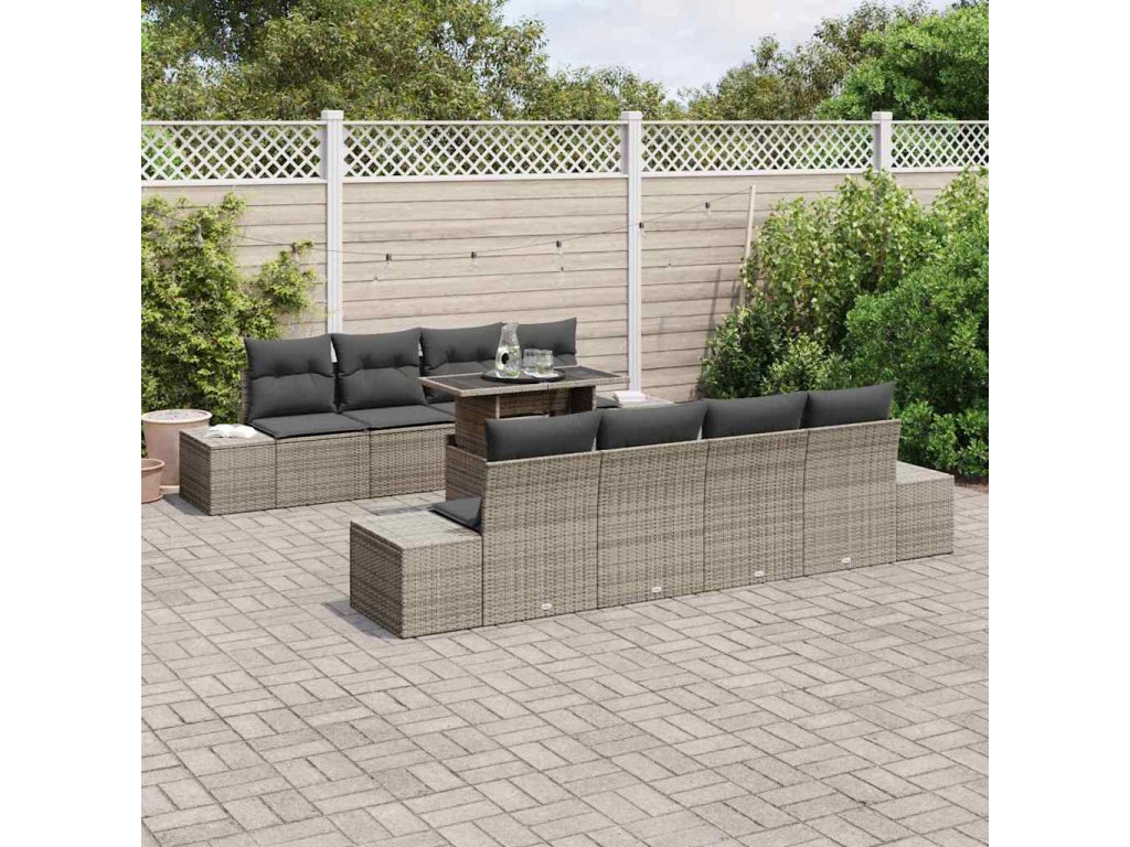 Tato sada zahradního nábytku má skvělý design pro venkovní odpočinek a zábavu, přidává styl a pohodlí na tvou terasu. Je vyrobena z kvalitního poly ratanu a polštářů, vytváří příjemnou atmosféru pro rodinu a přátele a zároveň se hodí k tvému zahradnímu stylu.