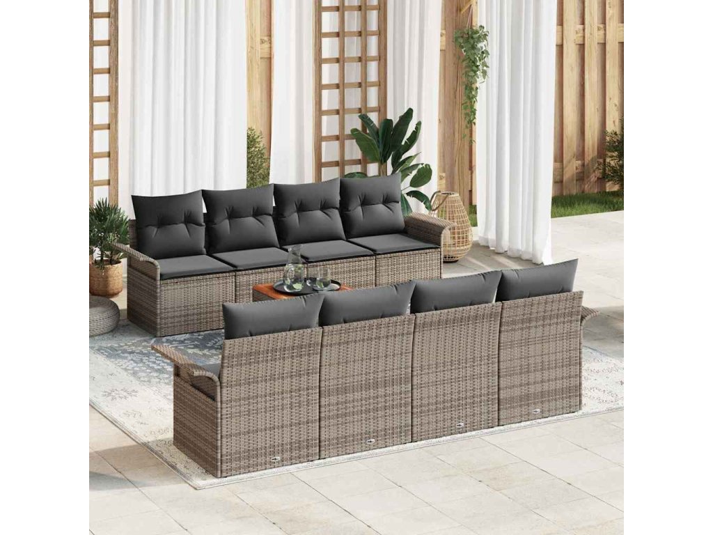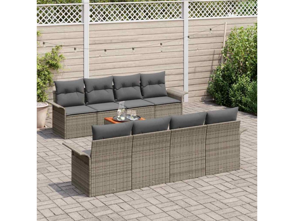 Tato sada zahradních pohovek spojuje styl a pohodlí pro venkovní lenošení, s moderním designem, který dodává šmrnc jakémukoliv patiu nebo zahradě. Hladké povrchy a měkké šedé polštáře vytvářejí vítanou zónu pro setkání s přáteli a rodinou, což dělá venkovní akce příjemnější.