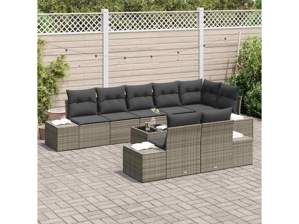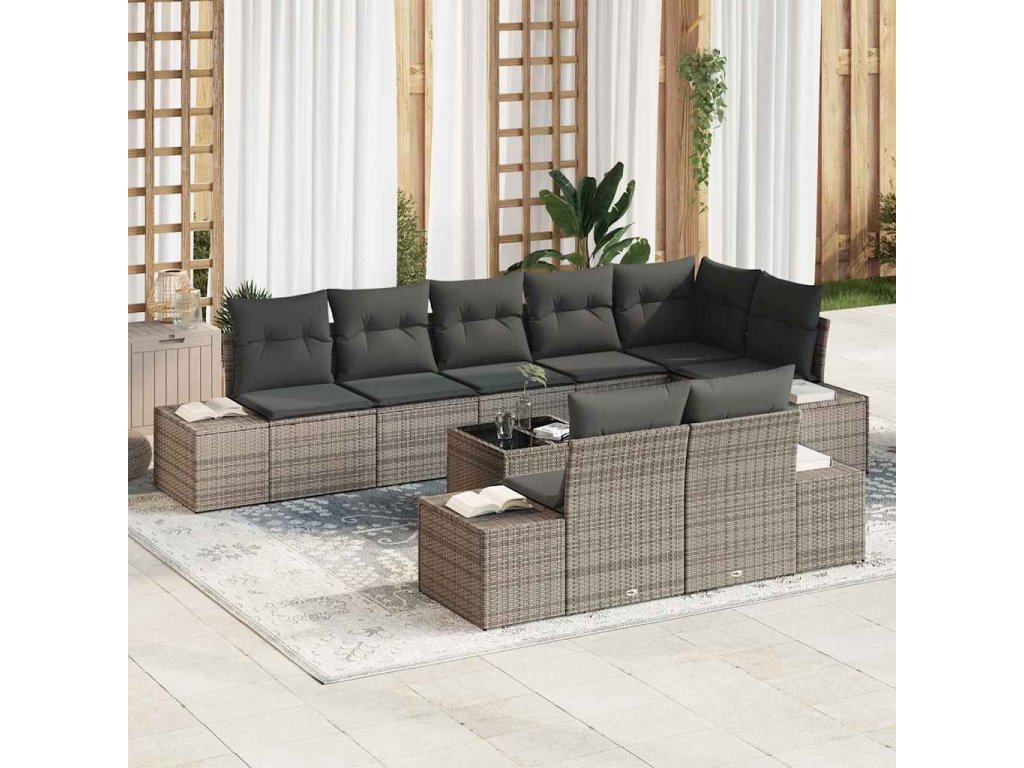 Tato venkovní pohovka přináší styl a pohodlí do tvé zahrady, balkonu nebo zimní zahrady. Má elegantní design z odolného šedého poly ratanu a pohodlné polštáře, což zajistí, že odpočinek venku bude skvělým zážitkem.
