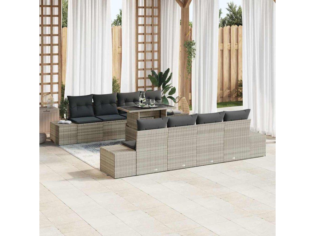 Tato zahradní pohovka má skvělý design, co je ideální na venkovní relaxaci a zábavu. Dodává eleganci a pohodlí vaší terase. Vyrobeno z odolného polyratanu a pohodlných polštářů, vytváří příjemnou atmosféru pro oslavy s rodinou a kamarády a skvěle se hodí k vaší zahradní dekoraci.