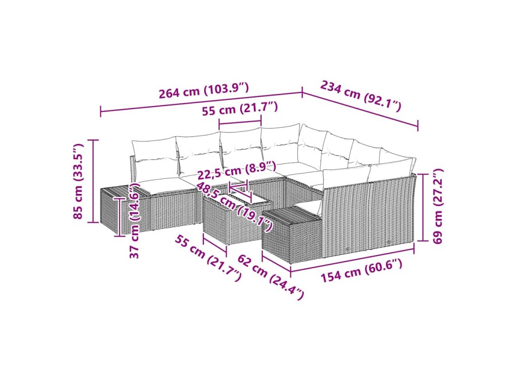 Tahle sada zahradních pohovek je stylový a flexibilní doplněk pro tvůj venkovní prostor. Je navržená jako ideální místo pro zahrady nebo terasy, má modulární kousky, které můžeš uspořádat různě. Vyrobená z elegantního poly ratanu, dodává moderní atmosféru a je pohodlná pro lenošení a socializaci. Možnosti uspořádání ji dělají perfektní pro všechno, od uvolněných rodinných setkání po stylové venkovní párty.