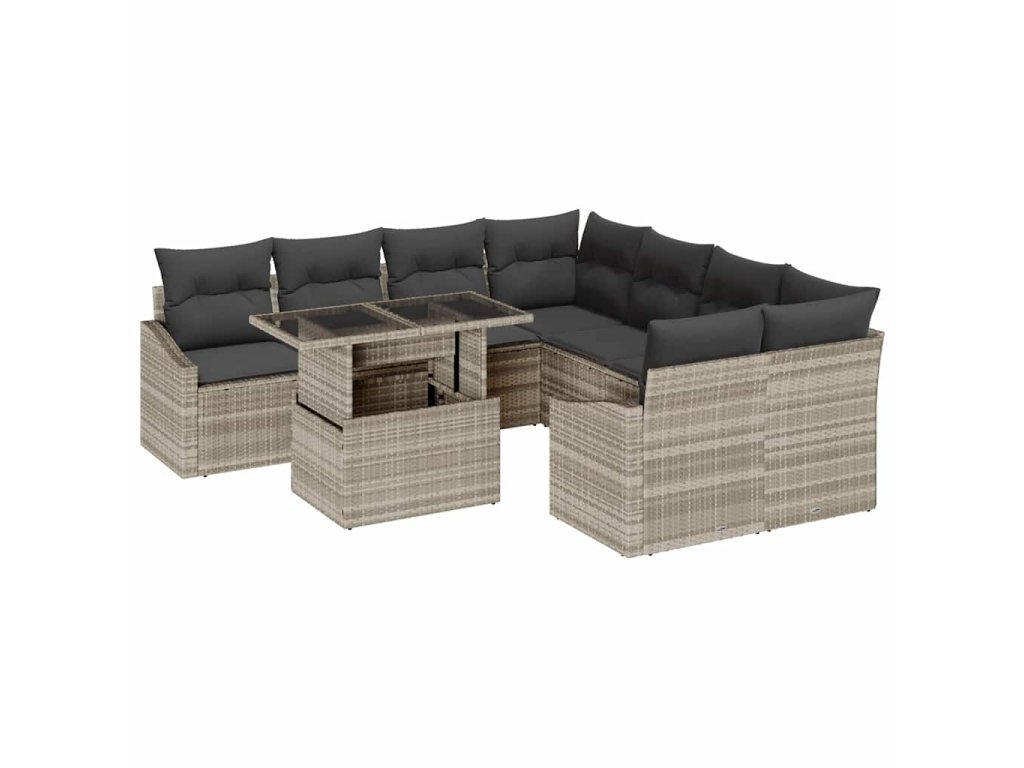 Tahle venkovní sada pohovek si dala za cíl vylepšit váš zážitek na zahradě nebo balkóně a zároveň udržet pohodlí a styl. S povrchovou úpravou ze světle šedého poly ratanu, co hezky vypadá kdekoli, tahle sada pohovek promění váš prostor na pohodlný kout ideální na teplé večery s rodinou nebo setkání s kámošema.