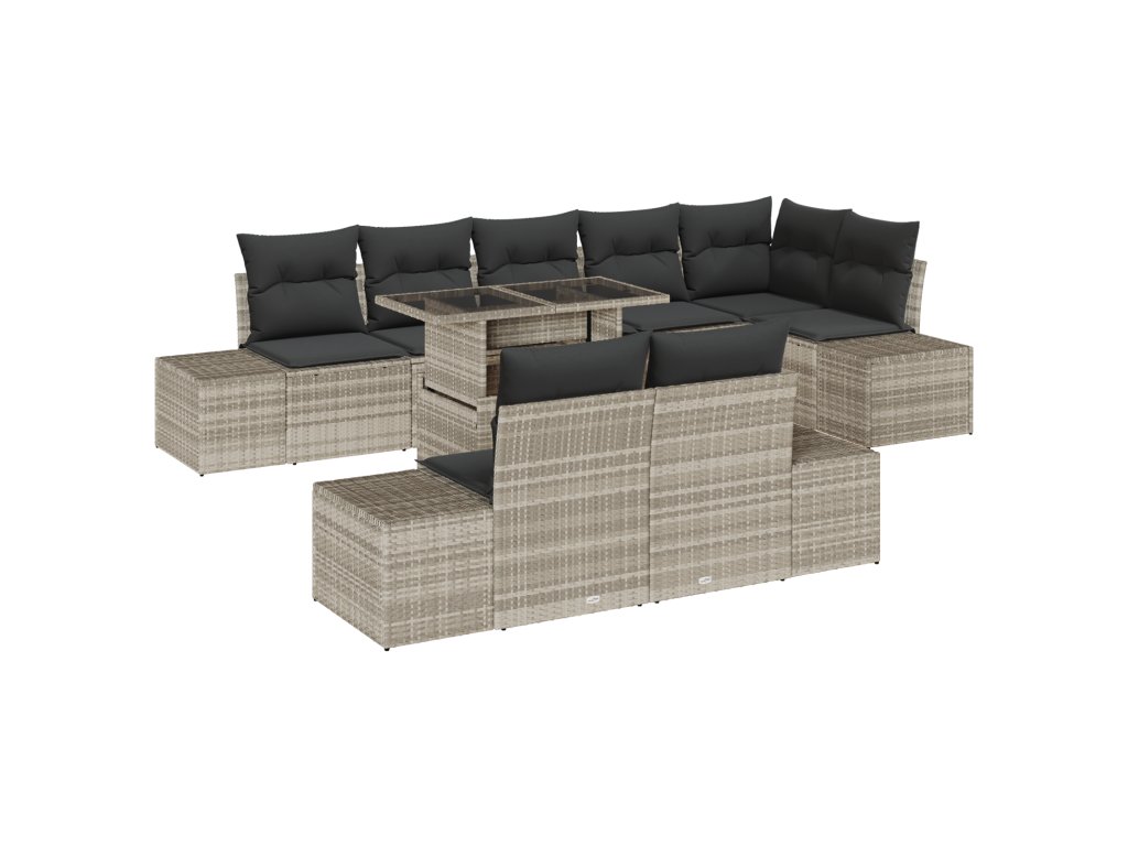 Tahle 9dílná zahradní souprava s polštáři je parádní mix stylu a funkčnosti, vyrobená z odolného ratanu, co fakt dělá venkovní život lepší. Její moderní vzhled a světlá šedá barva s kontrastními černými polštáři jsou ideální na socializaci nebo odpočinek na zahradě, patiu nebo zimní zahradě.