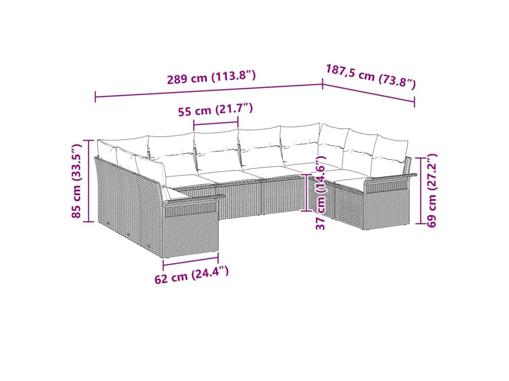 - 11 x Záda polštář: 55 x 55 cm (ŠxH)