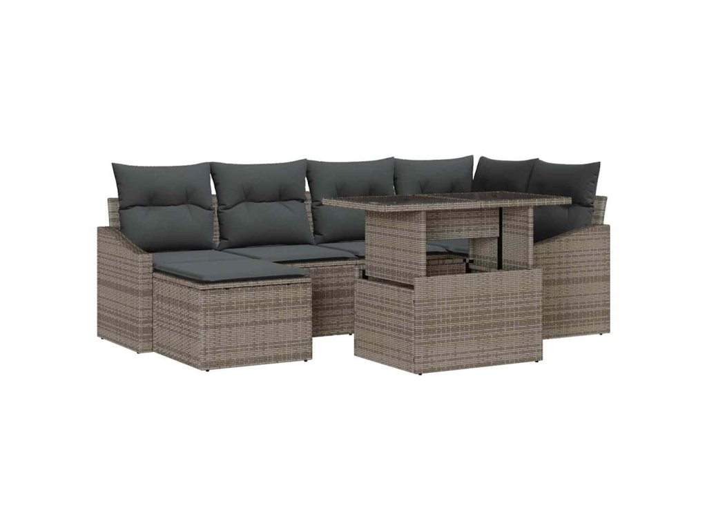 Tato 7dílná zahradní sedací souprava je navržená pro venkovní pohodlí s moderním nádechem v odolném poly ratanu. Sada obsahuje rohové sedadlo, střední sedadla, arm sofa, prostorný stůl a praktickou podnožku, což ti dává spoustu místa pro relaxaci a společenské akce v zahradě nebo na balkoně.