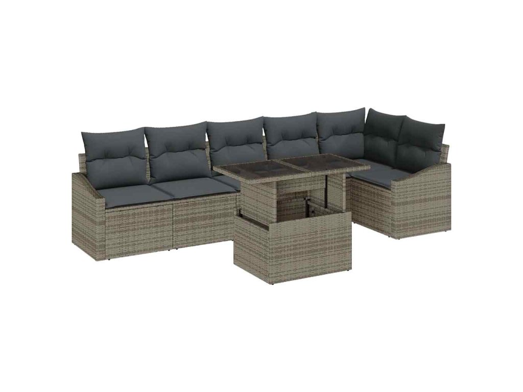 Tato sada zahradních pohovek se 7 kusy má elegantní a moderní design potažený stylovým černým poly ratanem, což ji dělá skvělou volbou pro zkrášlení venkovního prostoru. Ať už hostíš nebo si jen odpočíváš venku, tato krásná pohovka přichází s jemnými krémovými polštářky, které tě vybízejí, abys si užil slunečné dny nebo hvězdné noci v pohodlí.